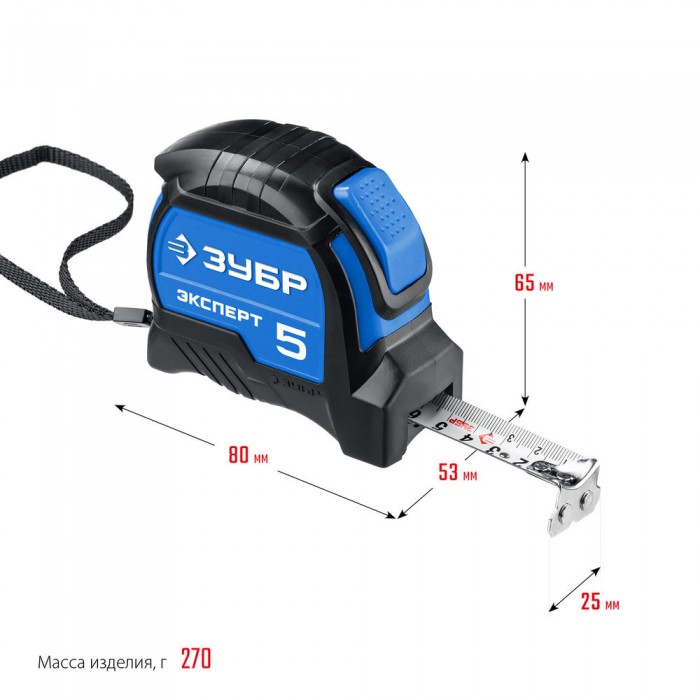 ЗУБР ЭКСПЕРТ, 5 м х 25 мм, рулетка с автостопом, Профессионал (34057-05-25_z02)