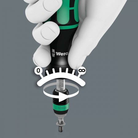 Отвёртка-битодержатель динамометрическая 0.10-0.34 Нм патрон Rapidaptor 1/4" D6.3/F6.3 лупа Kraftform серия 7430 Wera WE-074770
