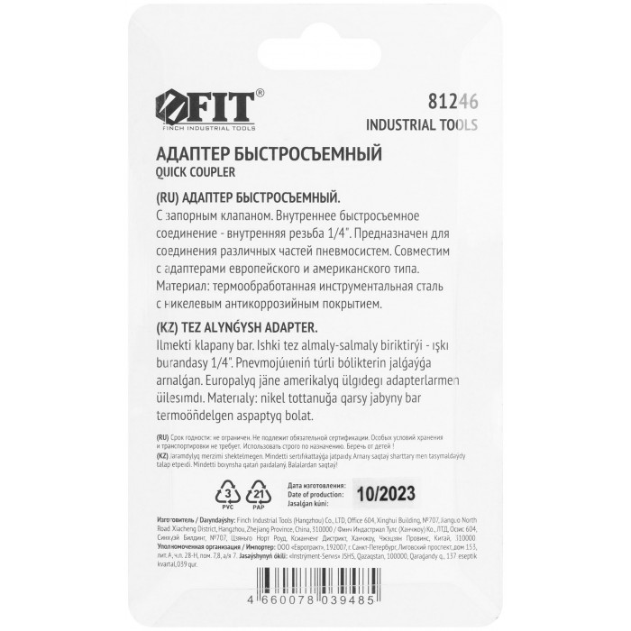 Адаптер быстросъемный с запорным клапаном с внутренней резьбой 1/4" (81246)