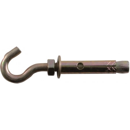 С крюком. Используется для крепления тяжеловесных конструкций к полнотелому бетону, природному строительному камню, полнотелому кирпичу. Может применяться для крепления к тонким бетонным перегородкам. Изготовлен из стали, поверхность оцинкована и пассивирована.