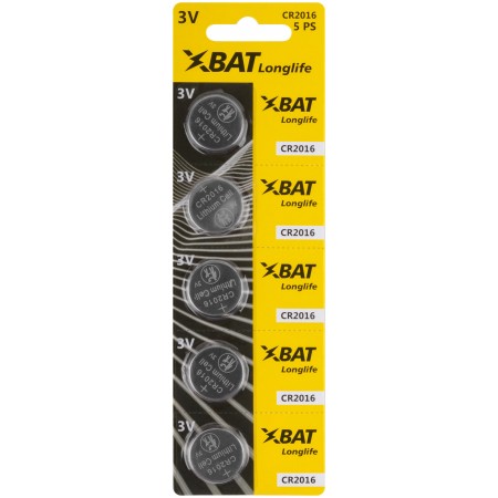 CR2016, 3.0 В, 90 мА/ч, 1,9 г. Расчетное удержание заряда при 20 °С: после