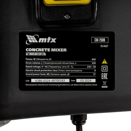 Бетоносмеситель СМ-250К, 250 л, мощность 850 Вт МТХ (95487)