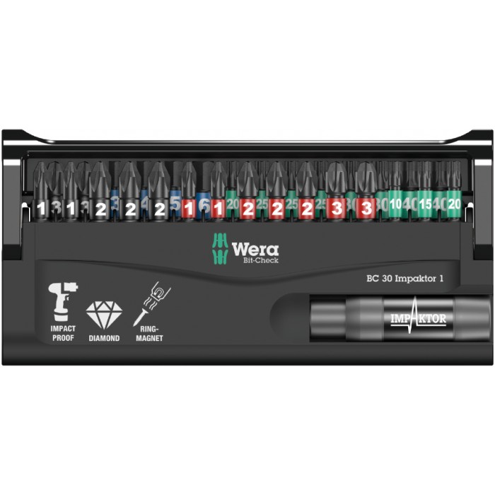 Набор бит ударных с битодержателем 30 Impaktor 1, алмаз, 30 пр., 1/4" C6.3 Bit-Check WE-057690