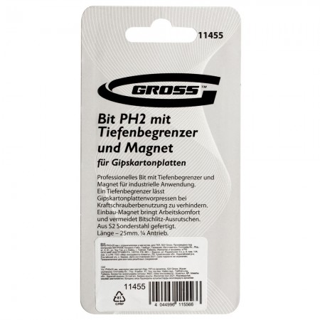 Бита PH2 x 25 мм с ограничителем и магнитом, для ГКЛ, S2 Gross (11455)