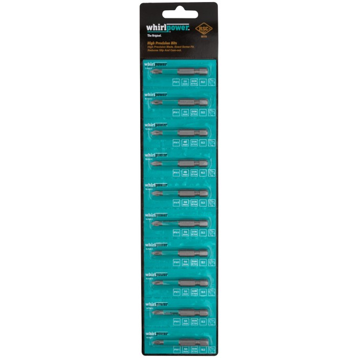 Биты WP, сталь S2, с насечкой, Профи, 50 мм PH1, 10 шт. (57576)
