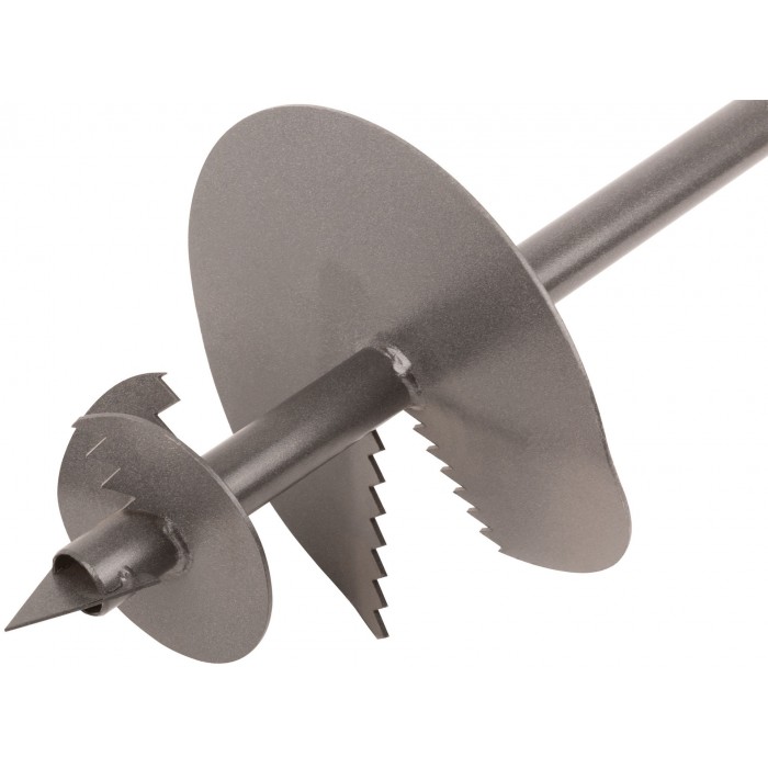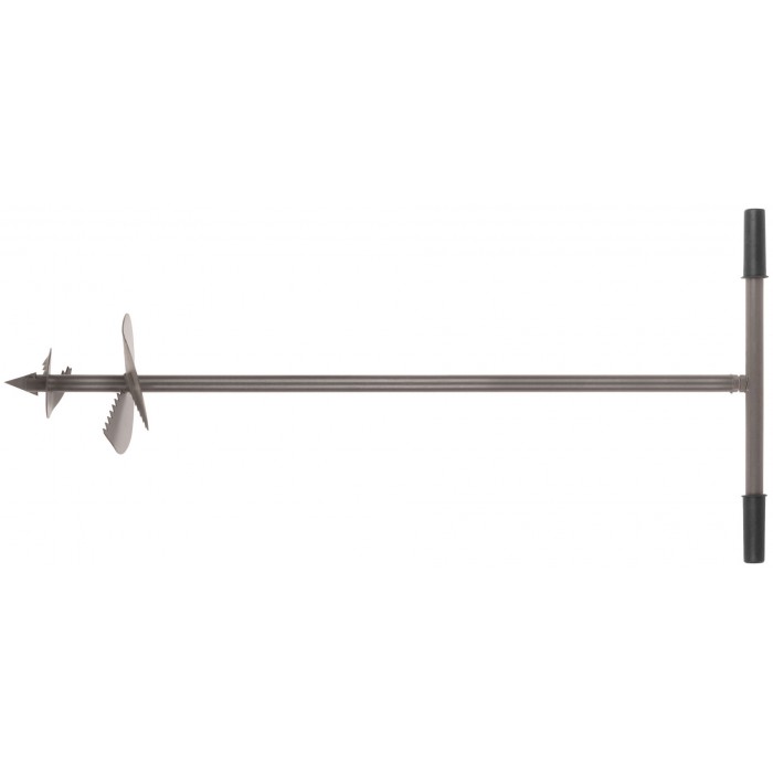 Бур садовый шнековый. Разборный, с возможностью увеличения длины за счет использования удлинителя 77248. Для ручного формирования скважин в грунте, предназначенных для установки различных опор, столбов, заливки свайных фундаментов и т.д. Материал: инструментальная сталь.