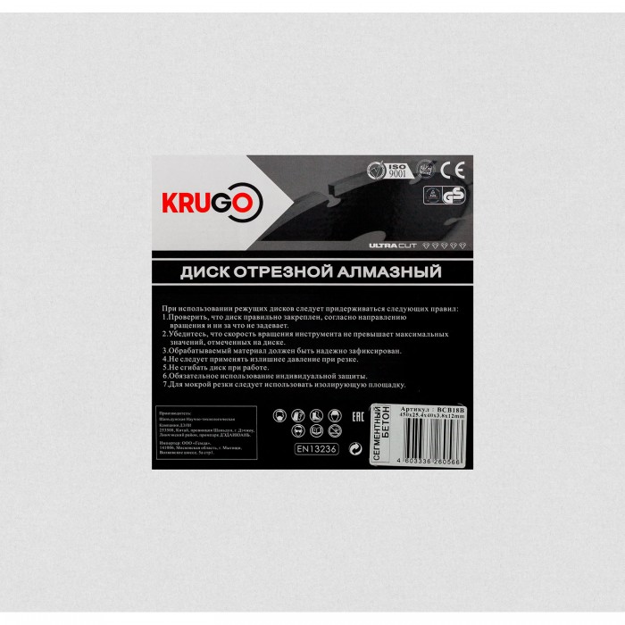 Диск алмазный для бетона 450x25.4x40x3.8x12mm KRUGO (BCB18B)