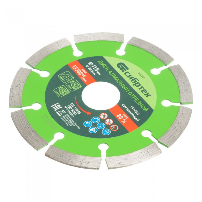 Диск алмазный, отрезной сегментный, 115 х 22.2 мм, сухая резка Сибртех (731007)