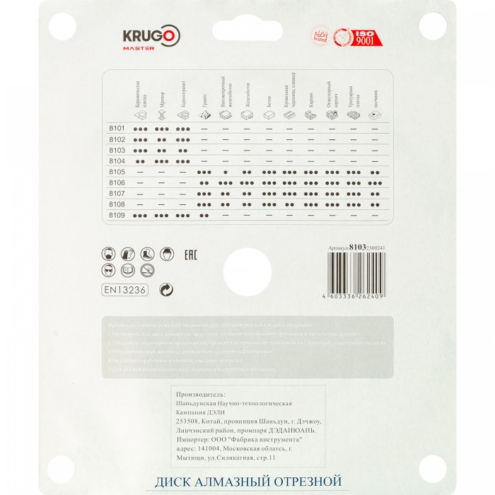 Диск алмазный Турбо ультратонкий для твердых материалов KRUGO MASTER 230х2,0х22,2х10 mm 81032300241