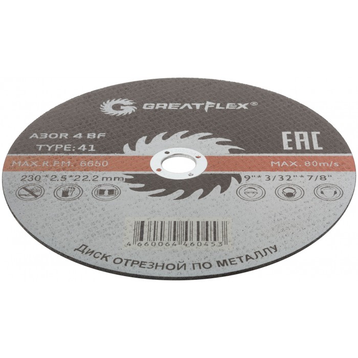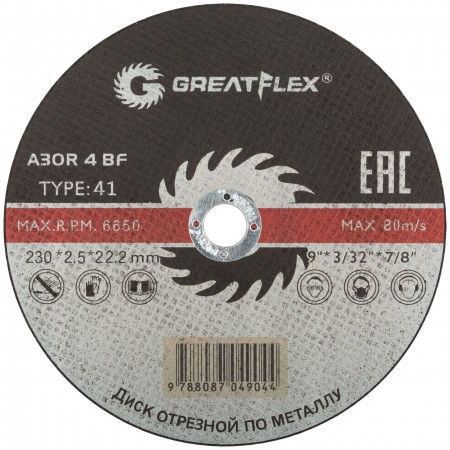 Диск отрезной по металлу Greatflex T41-230 х 2,5 х 22.2 мм, класс Master (50-41-006)