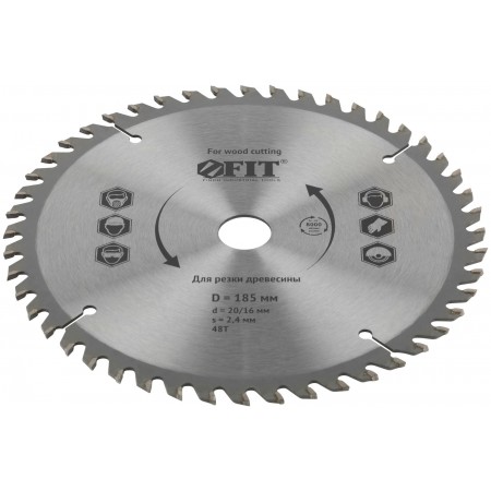 Диск пильный для циркулярных пил по дереву 185 х 20/16 х 48T (37740)