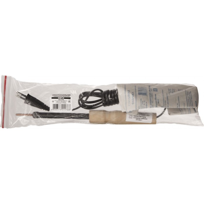 • Изготовлен с учетом требований ГОСТ 7219-83 качественному нагревательному элементу • Медный паяльный стержень имеет стбильную теплоотдачу • Небольшой вес позволяет работать с прибором длительное время без утомления • Удобная деревянная ручка обеспечивает безопасность во время работы • Соединительный шнур длиной не менее 1.5 м