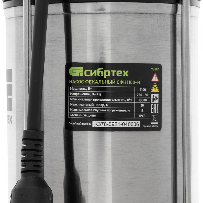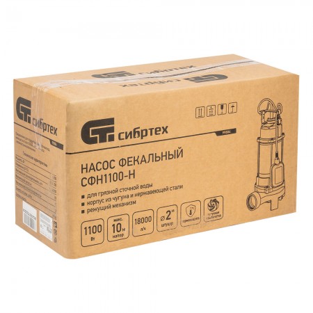 Фекальный насос СФН1100-Н, 1100 Вт, напор 10 м, 18000 л/ч, нож Сибртех (99804)