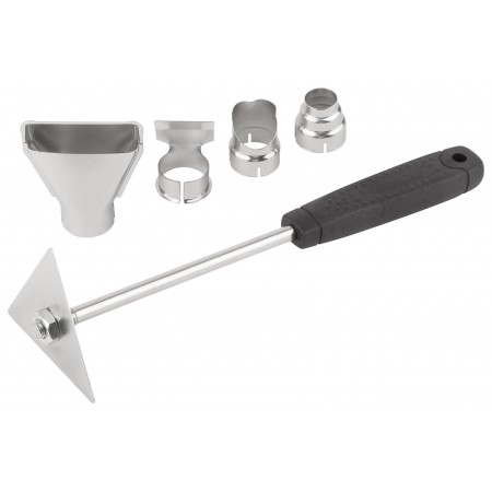2000 Вт; 350/600 С°; поток воздуха 300/500Gл/ мин; установочный диаметр насадок 34G мм; 8,5 А; 0,8 кг; коробка. 4 сменные насадки, цикля разборная, 2 температурных режима, клавишный переключатель, термореле для защиты от перегрева, возможность стационарной установки.