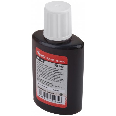 Ф-59А. Активный флюс. Для пайки алюминия и сплава АМЦ с медью и сталью припоями на основе олово-цинк и цинк-кадмий при t = 150 - 320 °C.