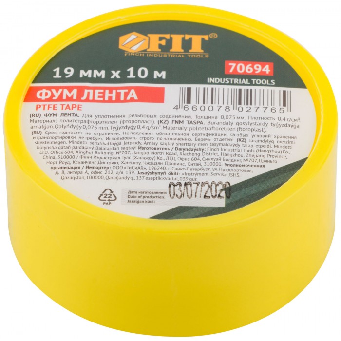 ФУМ Лента, плотность 0,4 гр/см3, 19 мм x 10 м x 0,075 мм (70694)
