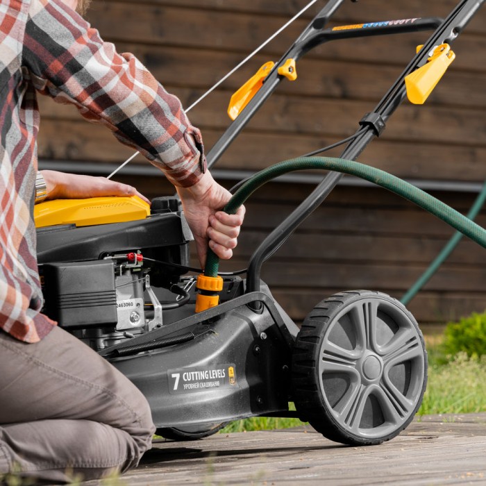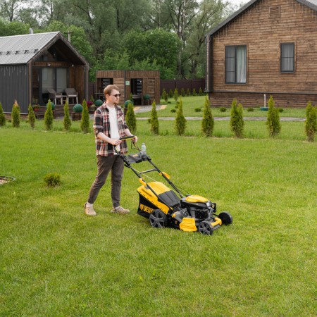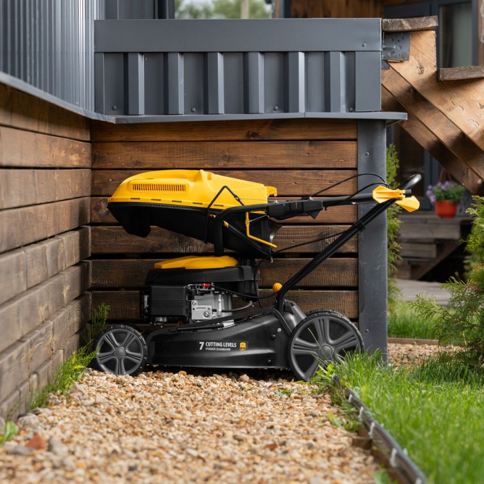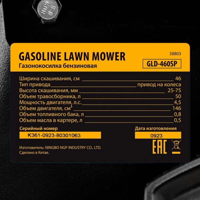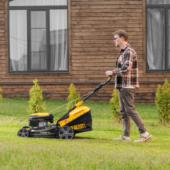 Газонокосилка бензиновая GLD-460SP, 146 куб.см, ширина 46 см, привод 7 уровней, травосборник 50 л Denzel (58803)