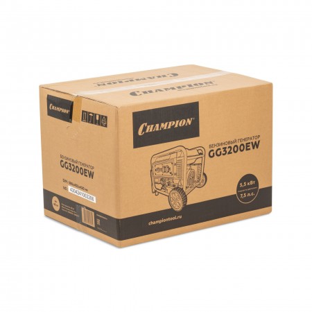 Генератор CHAMPION GG3200EW (3,2/3,5кВт 7,5лс 15л 48кг эл.старт колеса, счетчик) (GG3200EW)