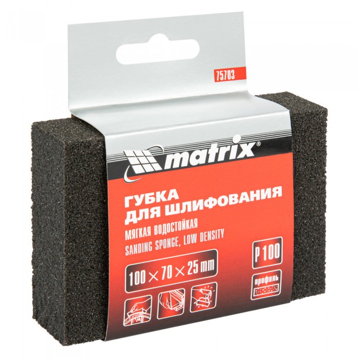 Губка для шлифования, 100 х 70 х 25 мм, мягкая, P 100 Matrix (75703)