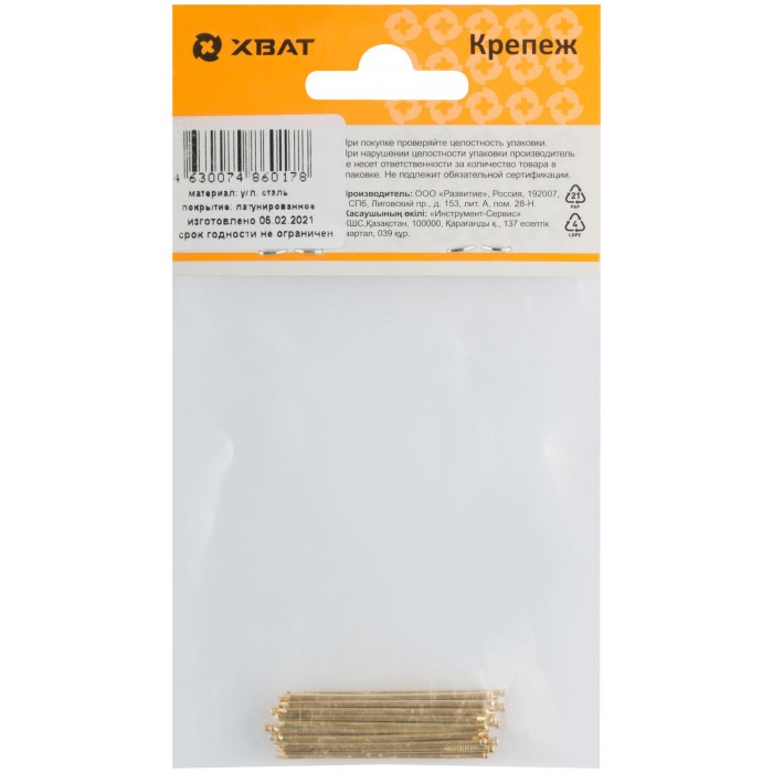Гвозди финишные латунированные 1,4 х 40 (фасовка 30 шт.) (31116-2)