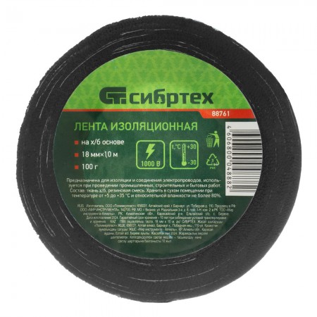 Изолента на ХБ основе 18 мм х 10 м, 100 г Сибртех (88761)