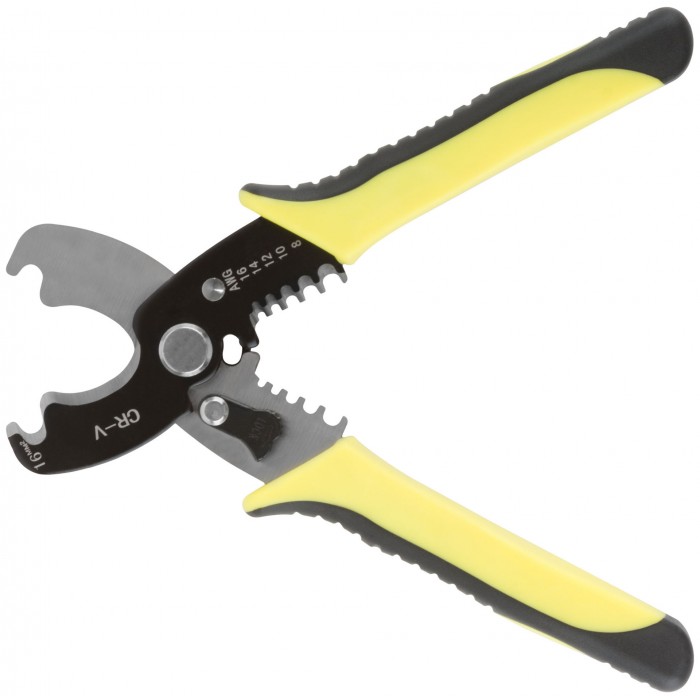 Для снятия изоляции с одножильных и многожильных проводов D = 1,3; 1,6; 2,0; 2,6; 3,2 мм, а также 4,6 с помощью верхнего обжима. Подходит для перекусывания изолированных проводов диаметром до 10 мм, стальной незакаленной проволоки диаметром до 2 мм, медной и алюминиевой проволоки диаметром до 4 мм. Материал: лезвия из высокоуглеродистой инструментальной стали, пластиковые прорезиненные ручки. Упаковка: блистер.