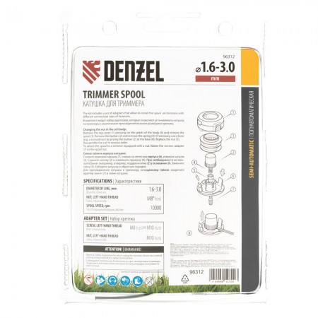 Катушка универсальная триммерная, гайка М8 х 1.25, гайка М10, винт М8-М10, левая резьба, шаг 1.25 мм Denzel (96312)