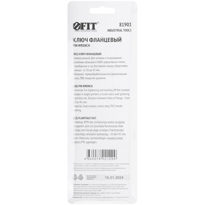 Для затяжки и откручивания резьбовых фланцев, используемых в УШМ, циркулярных пилах, штроборезах, и т.д. Материал: инструментальная сталь, ручка с ПВХ покрытием. Упаковка блистер.