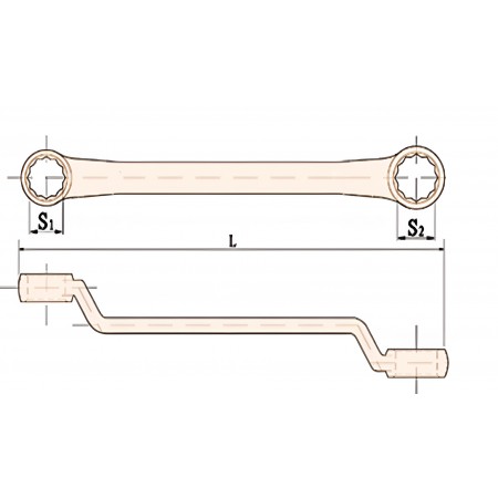 Ключ гаечный накидной двусторонний коленчатый 14х15 искробезопасный сплав AlCu 151-1415, HORTZ