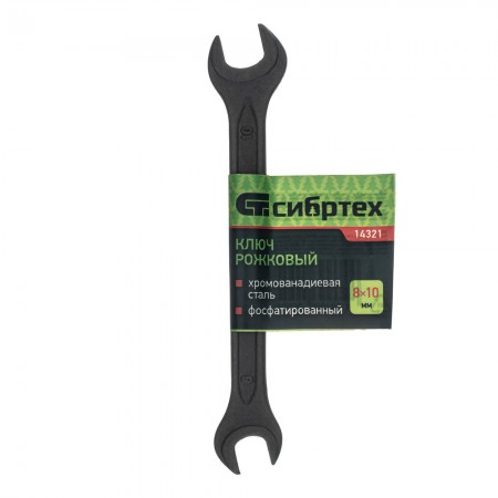 Ключ рожковый, 8 х 10 мм, CrV, фосфатированный Сибртех