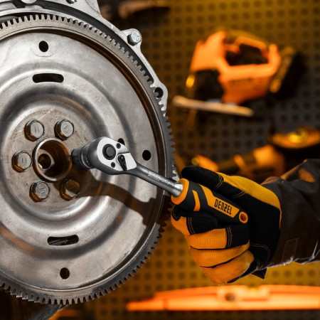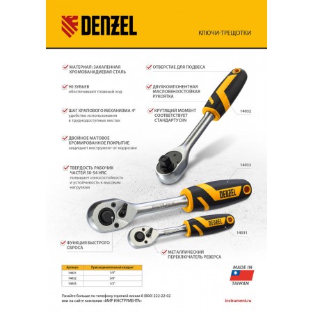 Ключ-трещотка 3/8", 90 зубьев, с быстрым сбросом, CrV Denzel