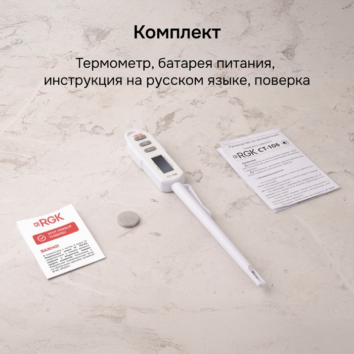 Термометр цифровой RGK CT-106, Руководство по эксплуатации, Батарея питания