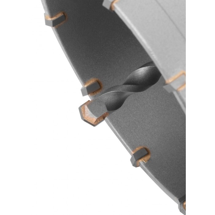 Коронка по бетону SDS-PLUS для профессионального использования. Хвостовик 100 мм. Предназначен для сверления отверстий в бетоне, камне и кирпиче. Материал: хром-молибденовая сталь, карбидная вставка.