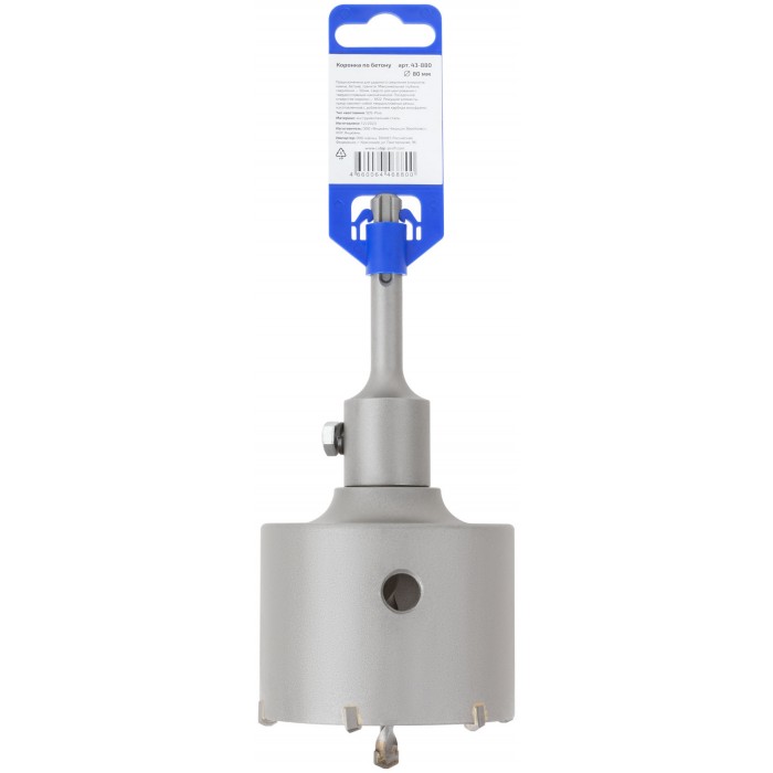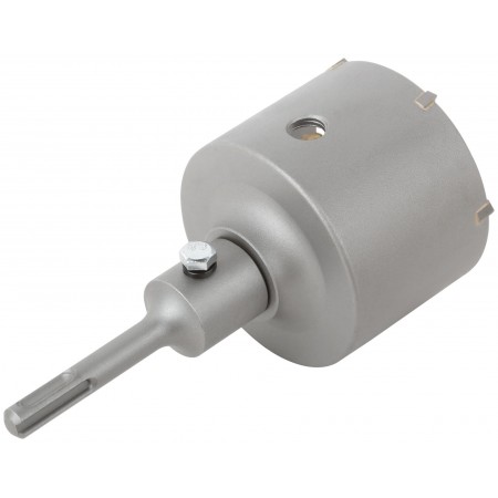 Предназначена для ударного сверления в кирпиче, камне, бетоне, граните. Максимальная глубина сверления — 50 мм. Сверло для центрования с твердосплавным наконечником. Посадочное отверстие коронки — М22. Режущие элементы представляют собой твердосплавные резцы, изготовленные с добавлением карбида вольфрама. Тип хвостовика: SDS-Plus. Материал: инструментальная сталь.