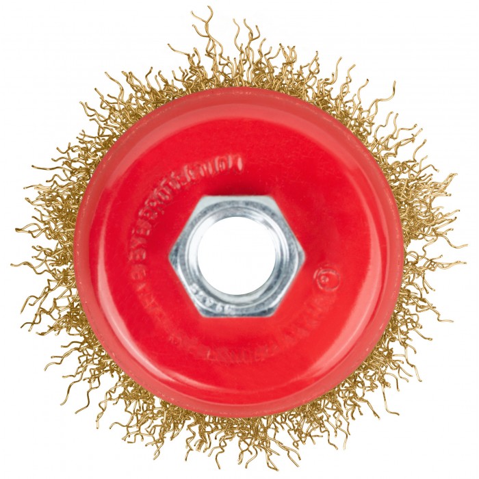 Корщетка-чашка, гайка М14, стальная латунированная волнистая проволока 65 мм (39265)
