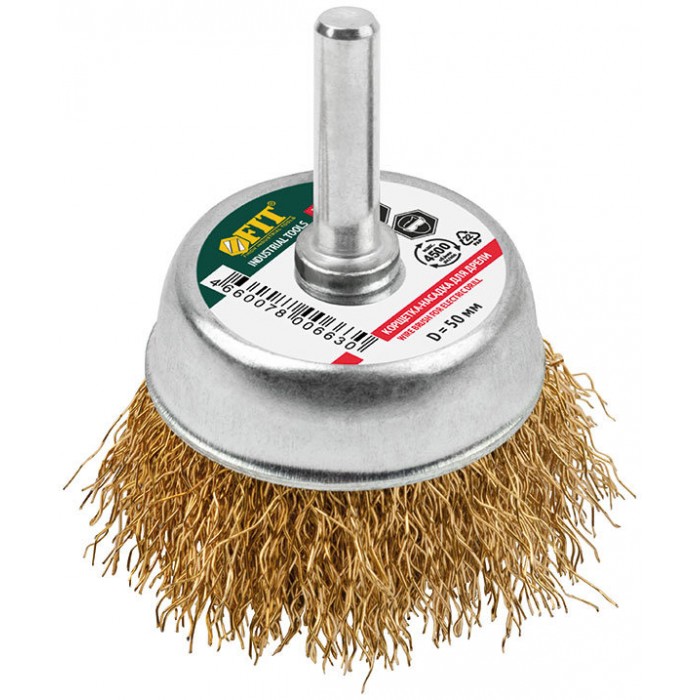 Корщетка-чашка, со штифтом, стальная латунированная волнистая проволока 50 мм (38515)