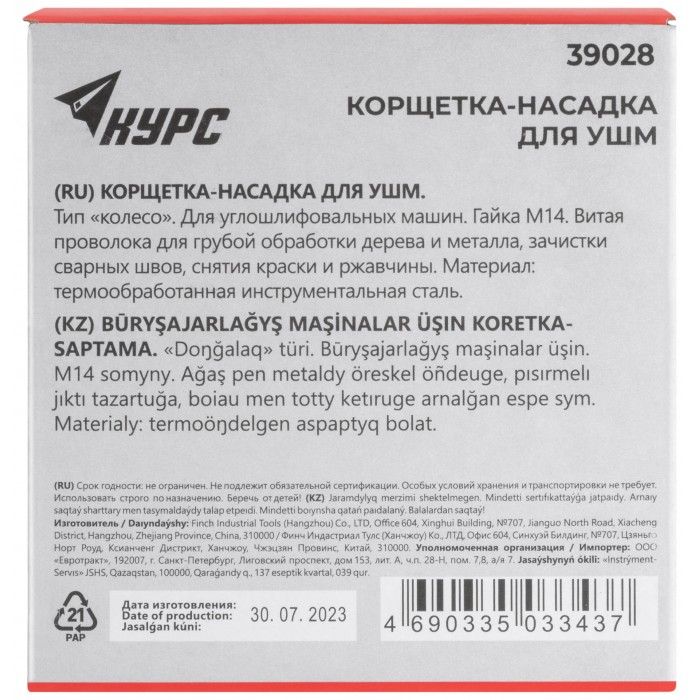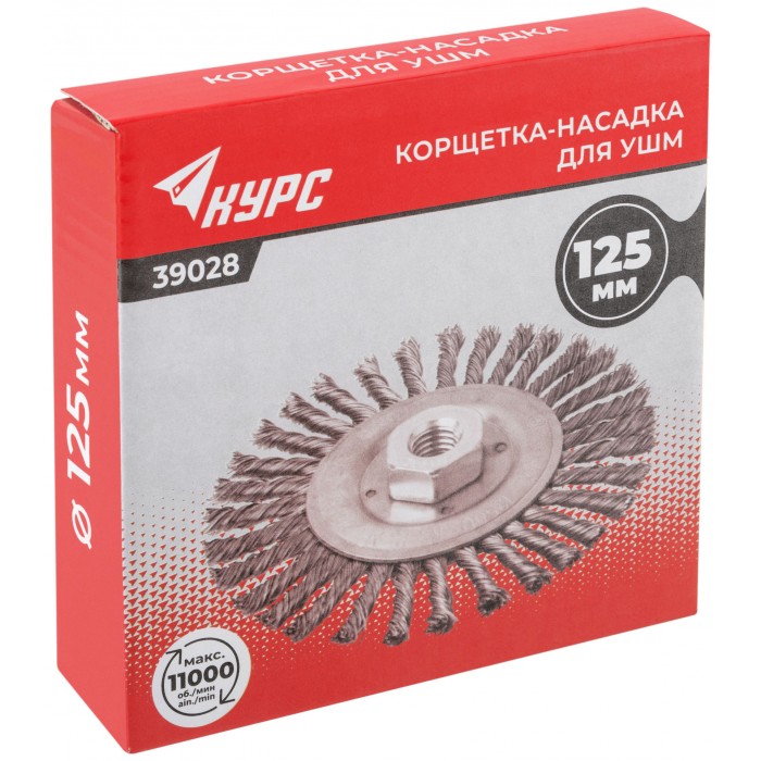 Корщетка-колесо, гайка М14, стальная витая проволока 125 мм (39028)