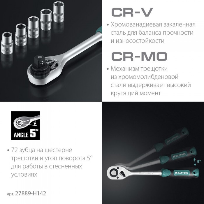 Набор инструмента универсальный 142 предм., (1/2"+3/8"+1/4") EXTREM-142 KRAFTOOL 27889-H142