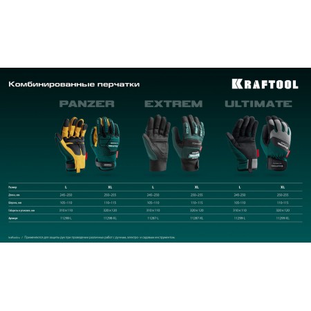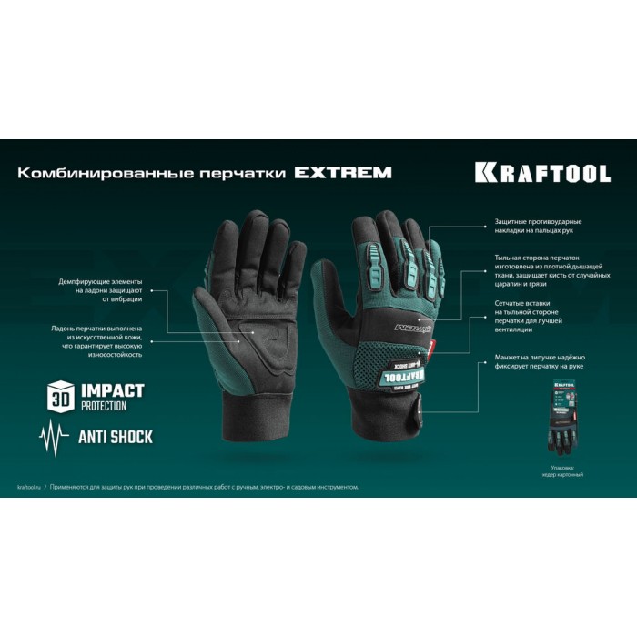 Профессиональные комбинированные перчатки Extrem, L (9), антивибрационные, противоударные KRAFTOOL 11287-L