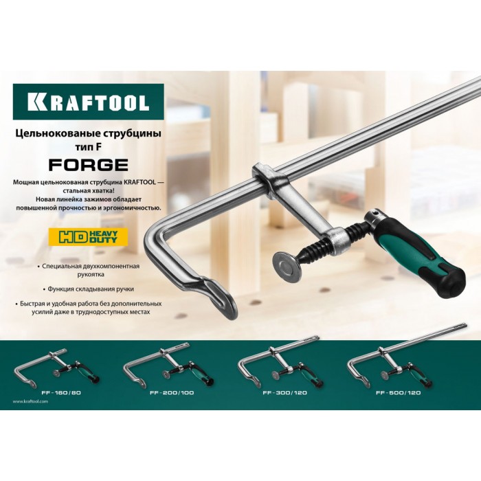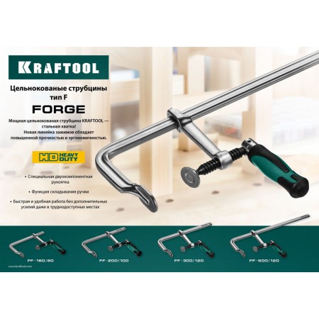 Цельнокованая струбцина F Forge FF-200/100, 100 х 200 мм KRAFTOOL 32014-100-200