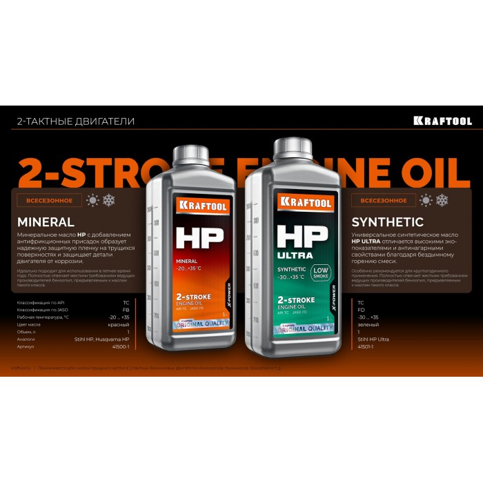 KRAFTOOL HP Ultra, 1 л, cинтетическое масло для 2-тактных двигателей (41501-1)