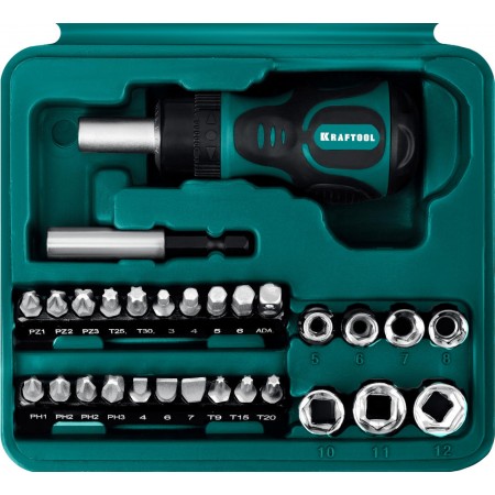 Отвертка реверсивная с насадками, 29 предм. Kompakt-29 KRAFTOOL 25556-H29