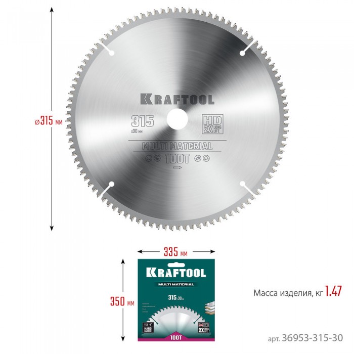 Пильный диск по алюминию Multi Material, 315 х 30 мм, 96Т KRAFTOOL 36953-315-30