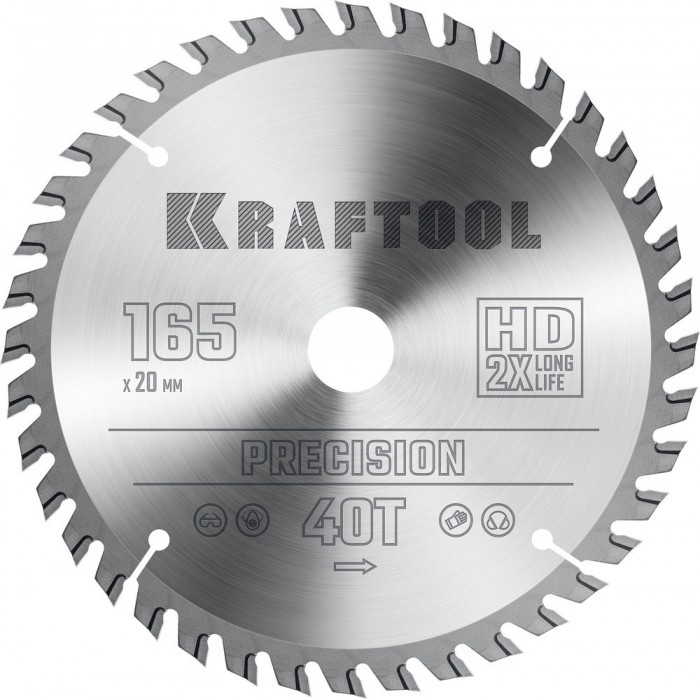 Пильный диск по дереву Precision, 165 х 20 мм, 40Т KRAFTOOL 36952-165-20