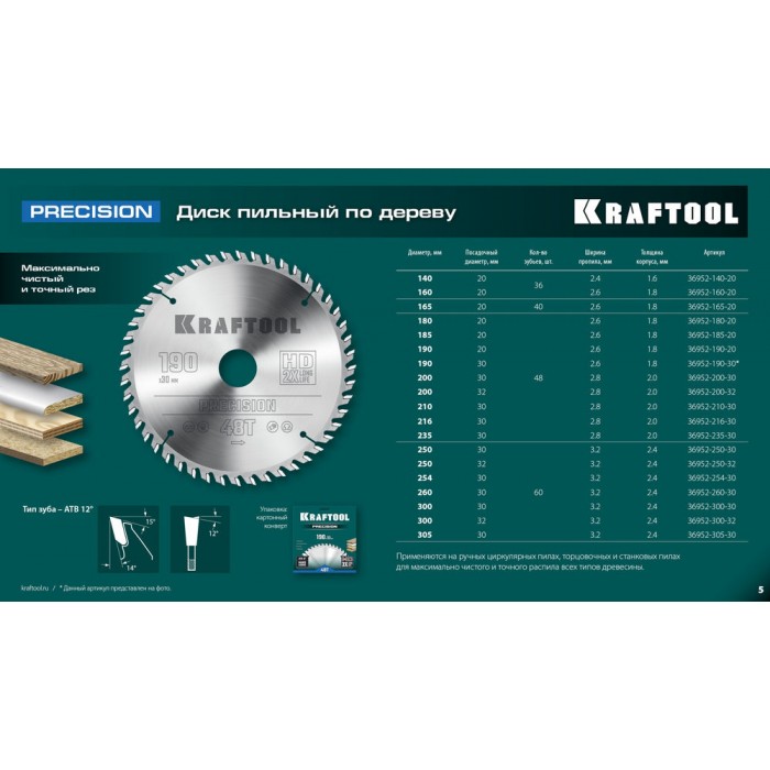 Пильные диски ″KRAFTOOL″ характеризуются максимальными показателями долговечности и эффективности пиления