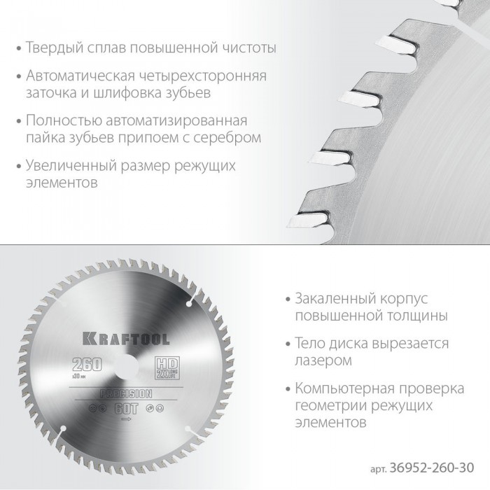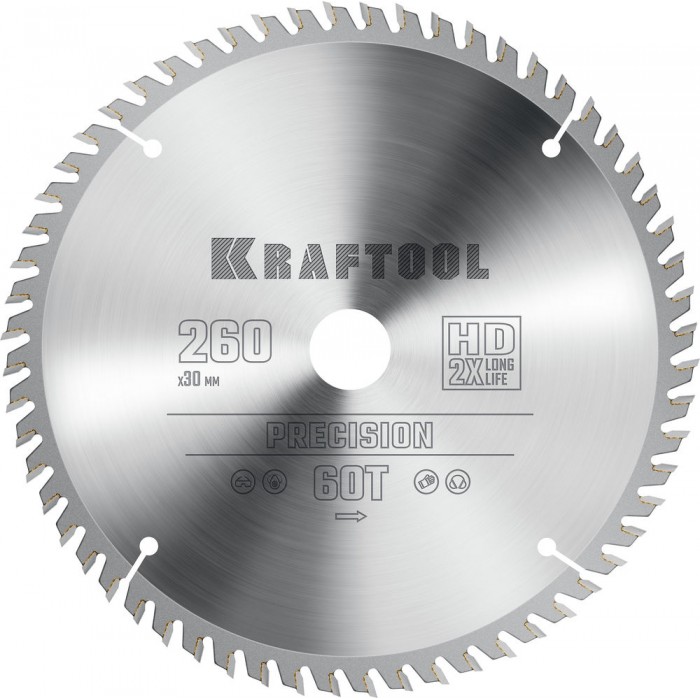 Пильный диск по дереву Precision, 260 х 30 мм, 60Т KRAFTOOL 36952-260-30