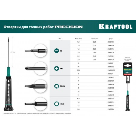 Отвертка для точных работ Precision SL0.8 KRAFTOOL 25681-0.8
