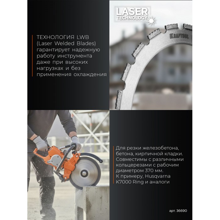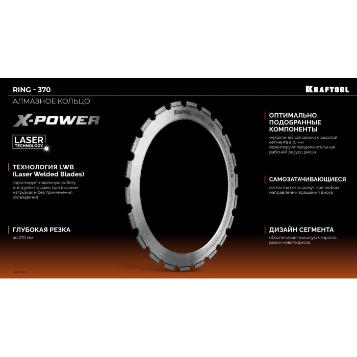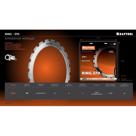 Алмазные отрезные кольца Kraftool RING-370 - профессиональный инструмент, отвечающий самым высоким стандартам качества.