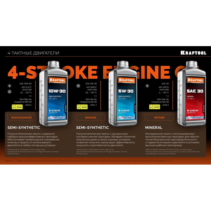 KRAFTOOL SAE 30, 1 л, минеральное масло для 4-тактных двигателей (41515-1)