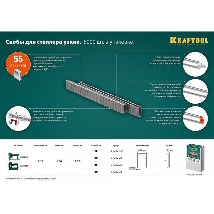 Скобы Kraftool изготовлены из закаленной проволоки с использованием новейших технологий специально для промышленного и профессионального применения.